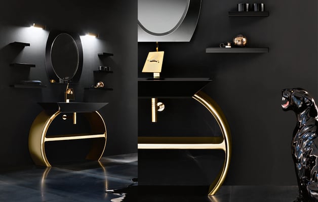 Tout est rond ou un subtile mariage de lignes courbes et obliques. Les éléments ont été déclinés pour créer différentes ambiances : chic, seventies ou pop. Une invitation au voyage sur la lune!